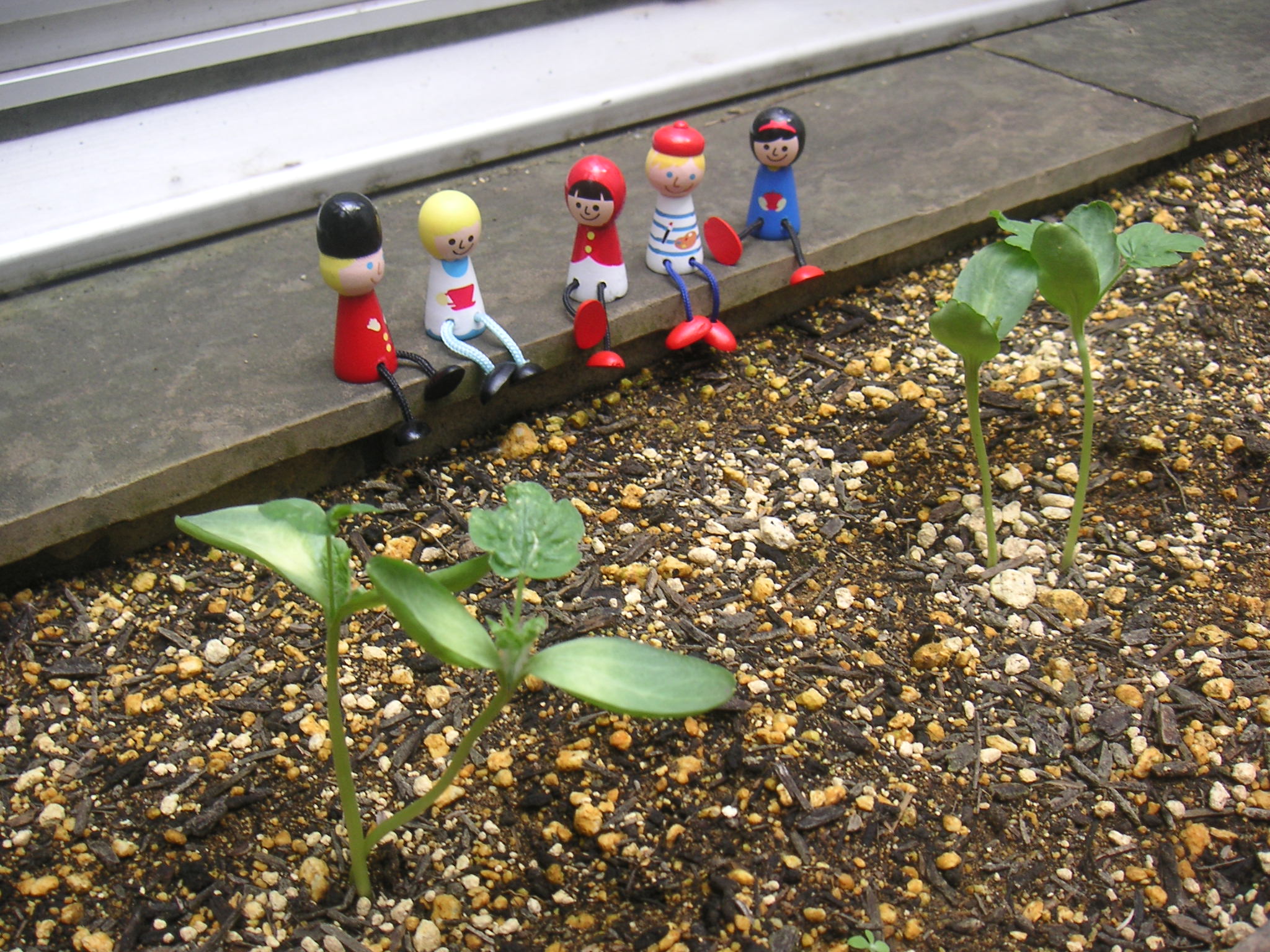 スイカの芽と人形