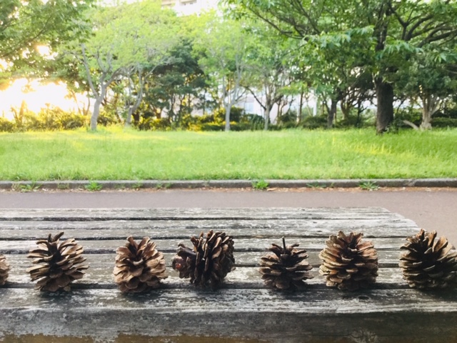 松ぼくり 誰が並べた イスの上☆