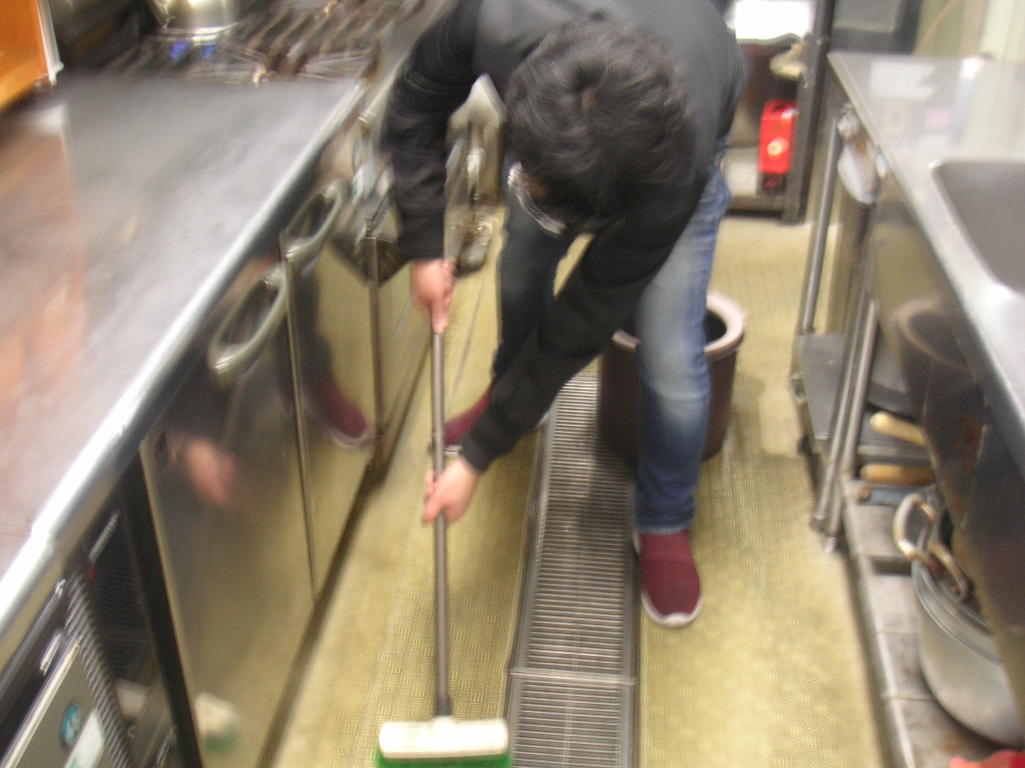 旧らぼろを、デッキブラシでゴシゴシしている様子☆